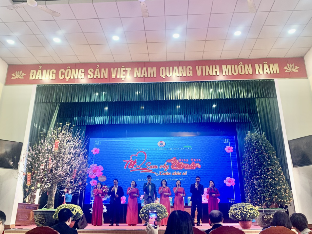Chiều ngày 30 tháng 01/ 2024, tại hội trường Huyện ủy An Lão, LĐLĐ Huyện An Lão tổ chức thành công chương trình Tết sum vầy - Xuân sẻ chia. Với các tiết mục văn nghệ sôi động và đặc sắc làm ấm áp hơn tình người lúc Xuân về. Nhiều anh chị em công nhân, viên chức có hoàn cảnh khó khă được trợ cấp, được tặng quà của các cấp chính quyền, công đoàn, được tặng vé xe về quê xa ăn tết, ... thực sự là chương trình gắn kết yêu thương, nâng tầm sức mạnh đại đoàn kết toàn dân. Với tinh thần tương thân, tương ái đầy cảm xúc nhân văn, truyền thống tốt đẹp của dân tộc Việt Nam những lúc Tết đến như thế này.