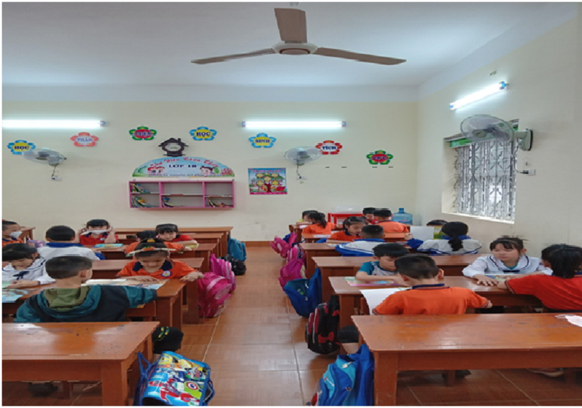 trong tiết Hoạt động trải nghiệm cô và trò khối 1 trường TH và THCS Lê Khắc Cẩn
