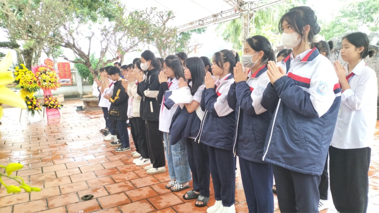 Các em học sinh tiêu biểu của khối 9 và khối 8 dâng hương trước đền Trạng trình.
