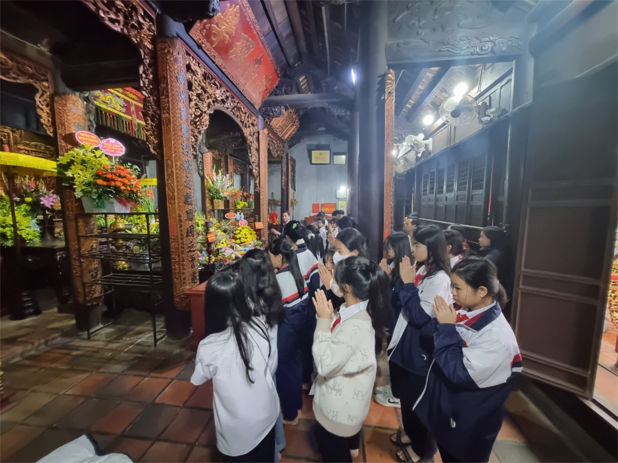 Các thầy cô và các em học sinh dâng lễ tại đền Trạng trình