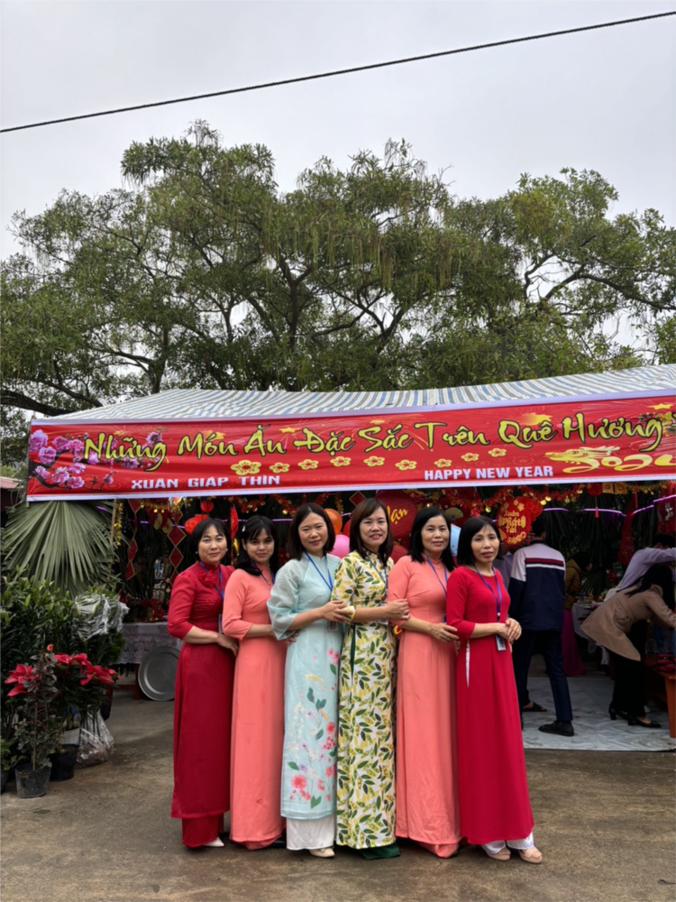 Trong ảnh, accs cô giáo Tiểu học trước cửa gian hàng hội chợ
